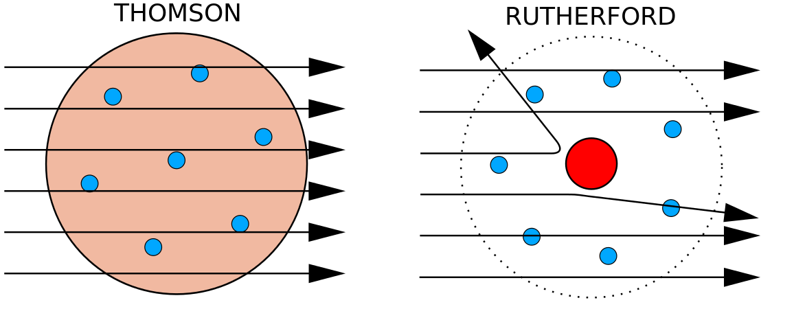 In 1897 bewees de Britse natuurkundige J. J. Thomson (1856-1940) dat atomen niet de meest basale vorm van materie waren. Bij zijn experimenten maakte hij gebruik van kathodestraalbuizen (CRT). In een vacuümomgeving produceren deze apparaten onzichtbare stralen die uitgaan van een negatieve elektrode (kathode) en doorgaan naar een positieve elektrode (anode). In deze experimenten toonde Thomson aan dat kathodestralen kunnen worden afgebogen door magnetische of elektrische velden, hetgeen erop wijst dat kathodestralen uit geladen deeltjes bestaan. Belangrijker nog, door de mate van afbuiging van de kathodestralen in magnetische of elektrische velden van verschillende sterkte te meten, kon Thomson de verhouding massa/lading van de deeltjes berekenen. Omdat gelijke ladingen elkaar afstoten en tegengestelde ladingen elkaar aantrekken, concludeerde Thomson dat de deeltjes een netto negatieve lading hadden; deze deeltjes worden nu elektronen genoemd. Thomson ontdekte dat de verhouding tussen massa en lading van kathodestralen onafhankelijk is van de aard van de metalen elektroden of het gas, wat suggereerde dat elektronen fundamentele componenten zijn van alle atomen.