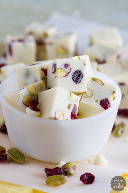 Un autre dessert de Thanksgiving non conventionnel qui mérite d’être essayé est ce fondant crémeux aux canneberges et aux pistaches. Faire n’importe quel type de bonbon peut sembler difficile, surtout à Thanksgiving lorsque vous devez déjà garder votre esprit sur tous les autres plats que vous préparez. Mais, créer un délicieux fudge ne doit pas être difficile. Avec seulement six ingrédients, c’est un dessert que vous pouvez facilement commencer le matin ou la nuit avant Thanksgiving et oublier jusqu’au moment de le manger. Retrouvez la recette sur tasteandtellblog.com.