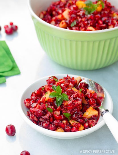 Un petit peu d’acidité et de texture peut faire beaucoup pour les canneberges. Il n’est pas toujours nécessaire de les cuire pour en faire une gelée ou une sauce pour profiter de leurs saveurs naturelles. Cette année, essayez d’utiliser des canneberges crues, des dés de pommes et des graines de grenade pour obtenir une relish croustillante qui ajoutera un peu de profondeur à votre repas de Thanksgiving. Retrouvez la recette sur aspicyperspective.com.