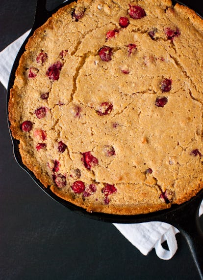 Tout plat à base de canneberges ne doit pas nécessairement être une sauce. Les canneberges sont assez polyvalentes pour être incluses dans de nombreux pains, gâteaux, desserts et plats d’accompagnement différents. Autre classique de Thanksgiving, le pain de maïs se marie parfaitement avec les canneberges. Cette recette utilise du sirop d’érable comme édulcorant naturel et une poêle en fonte pour obtenir une finition dorée parfaite. Retrouvez la recette sur cookieandkate.com.